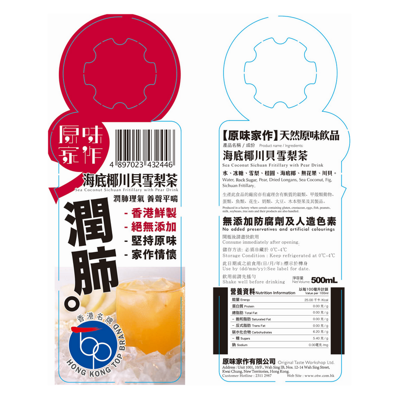 原味家作 海底椰川貝雪梨茶 500 ML