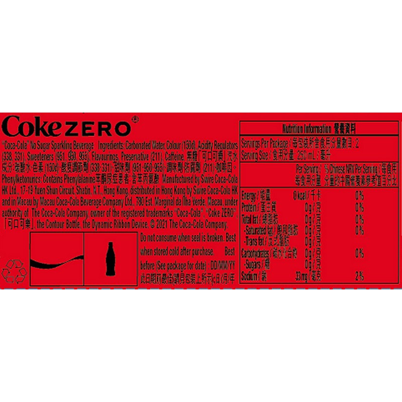 可口可樂 無糖樽裝 500 ML
