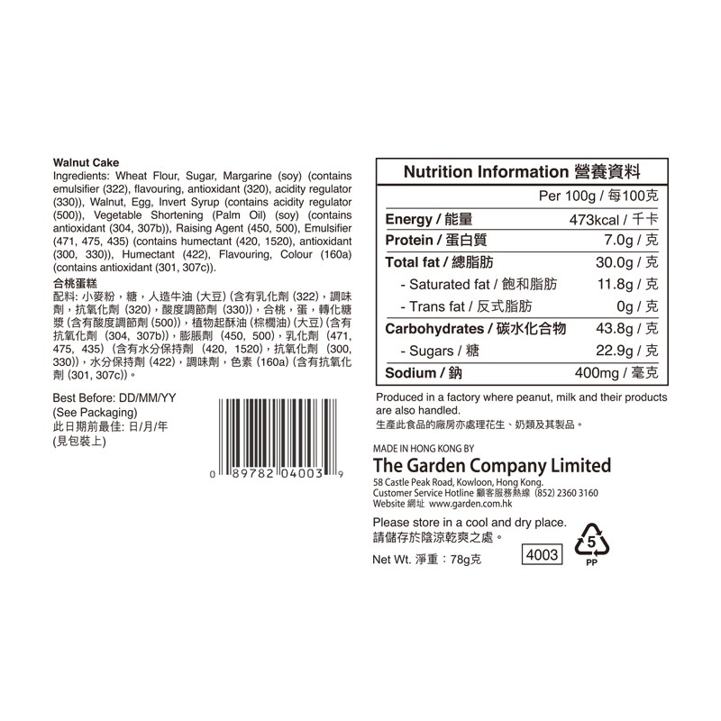 嘉頓 合桃孖寶蛋糕 78 GM