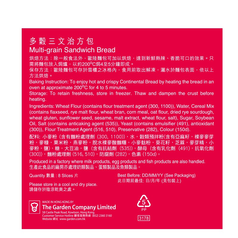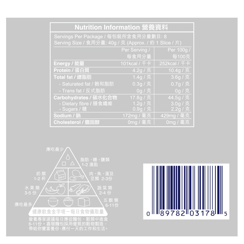 嘉頓 多穀三文治包8片裝 1 EA