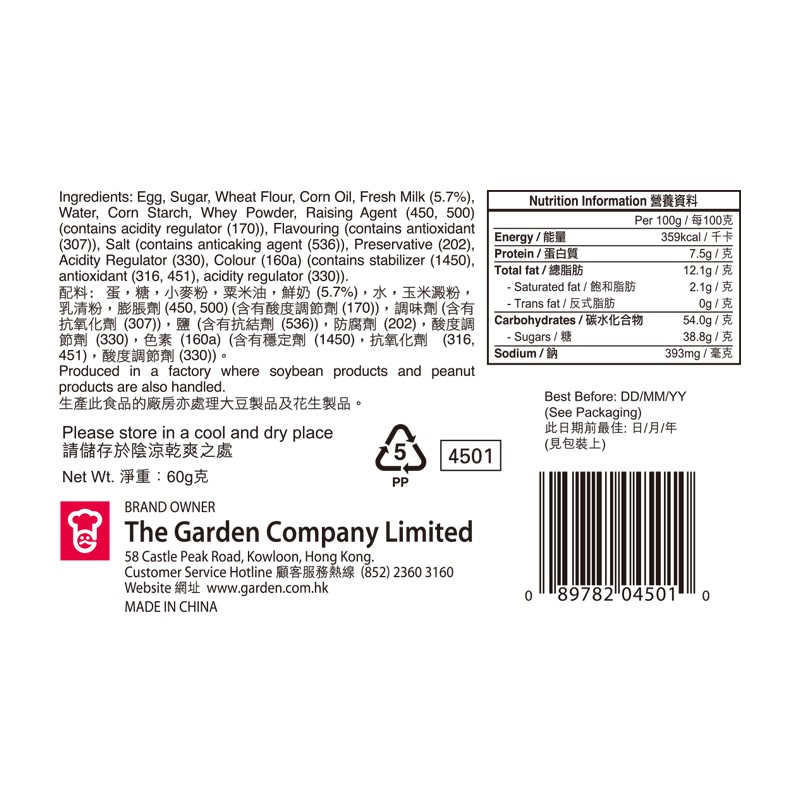 嘉頓 芝士雪芳蛋糕 60 GM