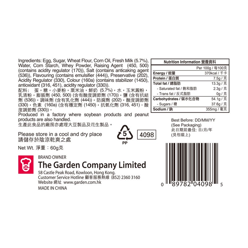 嘉頓 雪芳蛋糕-檸檬味 60 GM